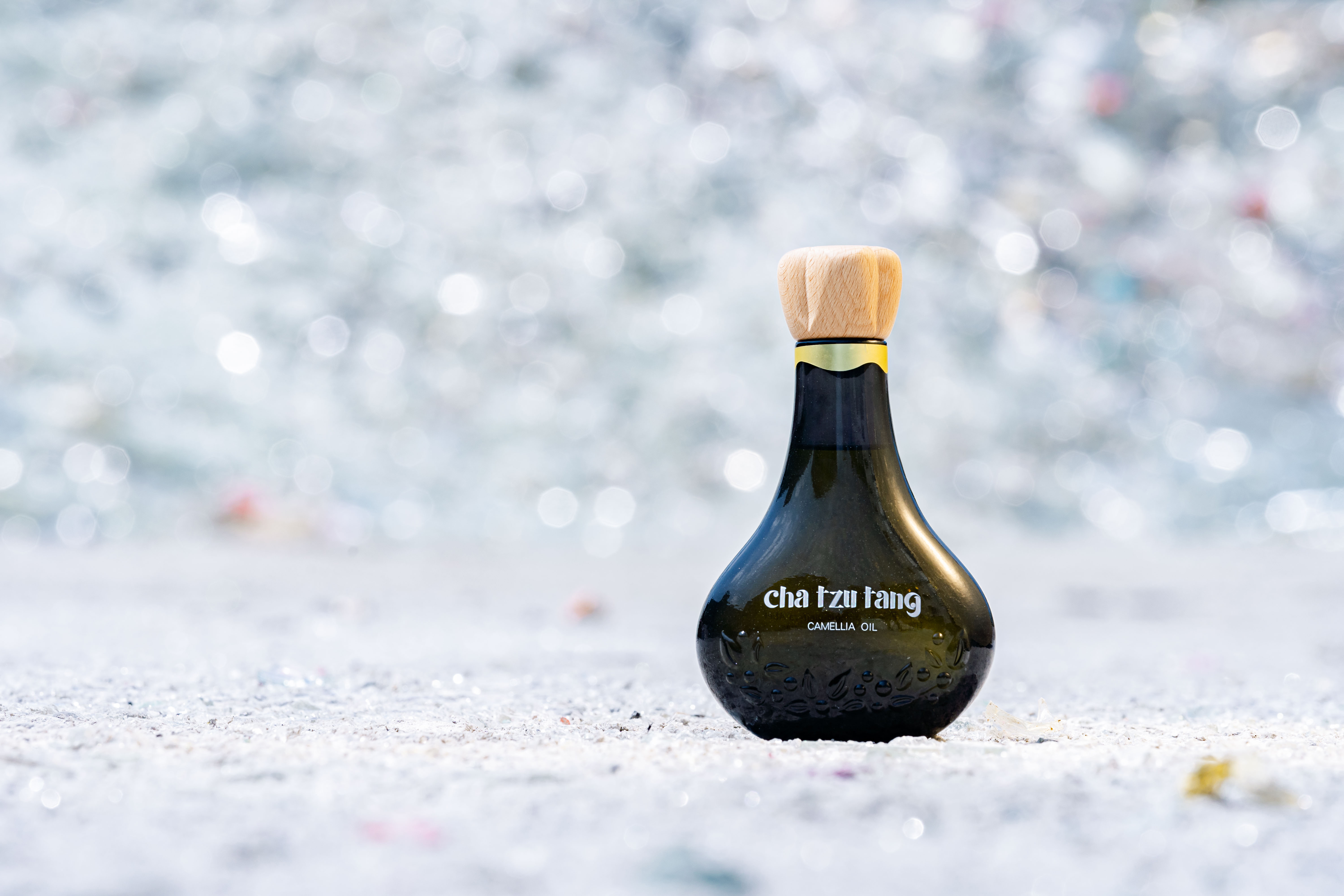 茶籽堂與春池結緣,也是因為循環經濟而開始。2017年文化博覽會,兩家企業因為傳產復興的主題受邀參展,開會時,吳庭安不斷提到環保和循環經濟,Wood當時心想:「環保和文博有什麼關係?」可是當他在展區看到由40噸回收玻璃鋪成的玻璃海,卻對循環的概念和應用感到震撼,於是決定找上春池合作,將苦茶油瓶改用回收玻璃來吹製。